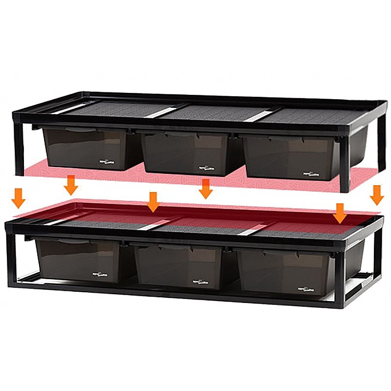 Stelaż pod terrarium można dowolnie rozbudować, dzięki dodatkowym modułom z literką "A" na końcu nazwy. Dodatkowe moduły posiadają konstrukcję identyczną do pierwszej / dolnej podstawki, za wyjątkiem dolnej ramki i zawartości kółek. Ilość modułów nie jest niczym ograniczona i może być dowolnie zwiększana w każdym momencie. Dodatkowe moduły idealnie pasują do pierwszej podstawki oraz pod terarrium z serii RK.