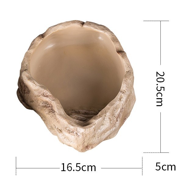 Naturalny oraz neutralny kolor i sruktura zewnętrzna miski pozwala na łatwe dopasowanie tego elementu do wnętrza o charakterze tropikalnym, pustynnym, czy jakimkolwiek innym terrarium.