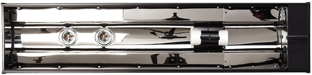 W belce znajdują się odbłyśniki wykonane z wysoko polerowanej stali nierdzewnej redukując straty oraz wzmacniając emisję promieniowania UV.