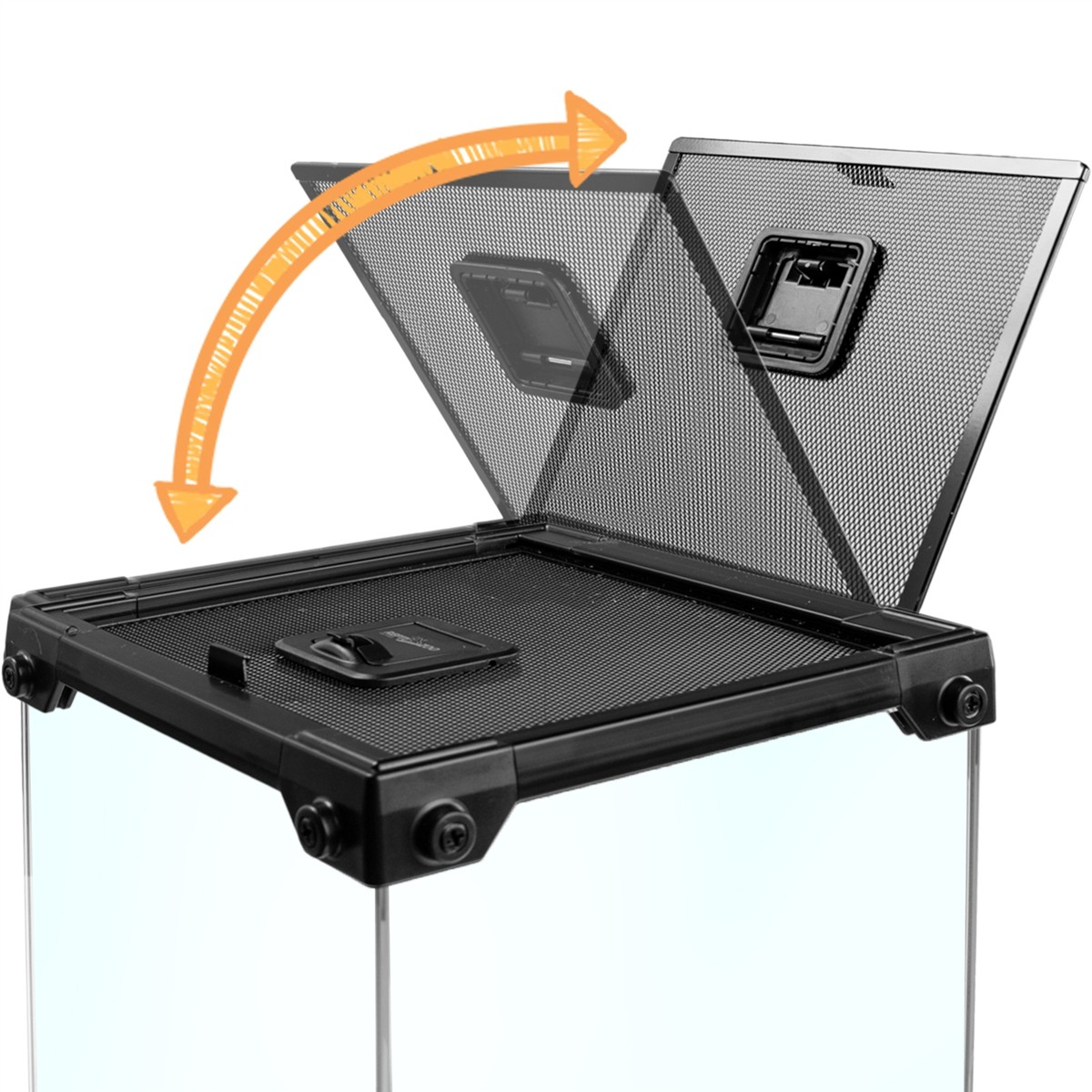 Terrarium szklane z uchylaną górną pokrywą wykonaną z wodo i ognioodpornej stalowej siatki. Do tego małe wieczko na podawanie pokarmy i wodoszczelne dno. Całość bardzo kompaktowa i łatwa w użytku. Dla mniejszych zwierząt, które nie wymagają wiele miejsca. Terrarium idealne dla młodszych adeptów tropikalnych zwierząt, jak i na biurko. Jest też doskonałym kompromisem pomiędzy: "chcę mieć terrarium - ale za bardzo nie mam na nie miejsca w domu"