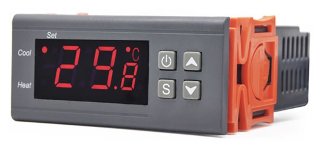 Termostat cyfrowy firmy RINGDER RC-316M. Posiada dwa wyjścia jedno na ogrzewanie a drugie na chłodzenie. Oba wyjścia działają jednocześnie, przy przekroczeniu zaprogramowanej temperatury urządzenie grzewcze zostaje wyłączone a urządzenie chłodzące włączone. Termostat posiada również funkcję opóźniacza czasowego, który wstrzyma pracę urządzenia grzejącego lub chłodzącego. Można używać tylko jednego wyjścia, drugie może pozostać nie podłączone.