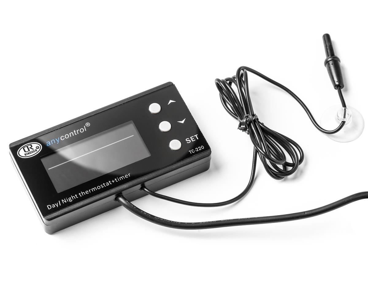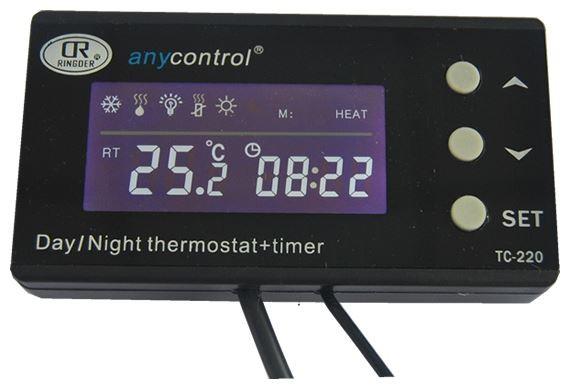 RINGER TC-220 wyposażony jest w duży czytelny i podświetlany wyświetlacz LCD. Urządzenie jest łatwe w programowaniu a możliwość montażu w pokrywie akwarium lub w terrarium pozwala na szybką adaptacje urządzenia w każdym wybiegu. Pełna kontrola, spadku czy wzrostu temperatury i zmiany oświetlenia, sprzyja dobremu samopoczuciu pupila oraz pobudza apetyt, zachowania rozrodcze oraz pozwala wywołać sen zimowy. Urządzenie zapamiętuje ustawienie w przypadku braku prądu.