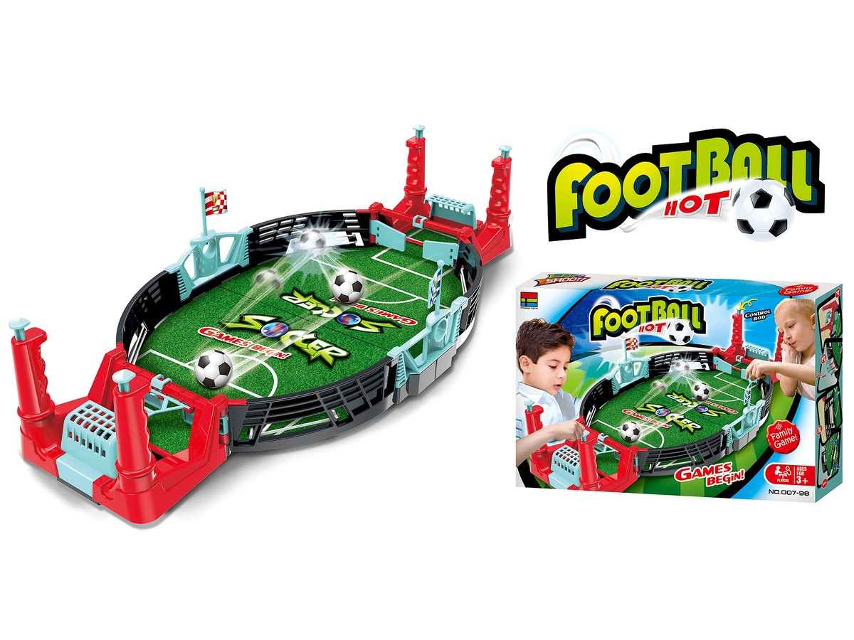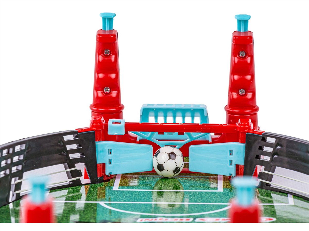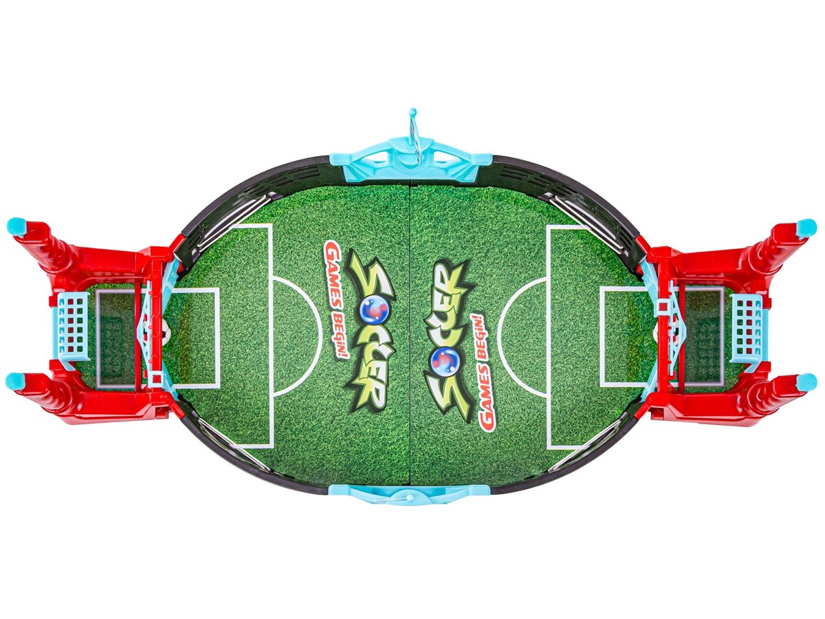Teraz możesz zagrać w mecz piłki nożnej i to bez wychodzenia z domu! Gra polega na odbijaniu piłki i celowaniu w bramkę przeciwnika. Aby nadać piłce prędkości naciskamy dżojsticki za bramką. Naciskając je wybijamy piłkę za pomocą otwieranych drzwiczek bramki. Gumki po bokach oraz plansza z delikatnym spadem w kierunku bramek sprawia, że piłka jest cały czas w ruchu i nie tak łatwo ją obronić. Piłka potrafi śmigać na planszy naprawdę szybko - wykaż się więc refleksem, bądź super bramkarzem a jednocześnie wbij mnóstwo goli przeciwnikowi.
