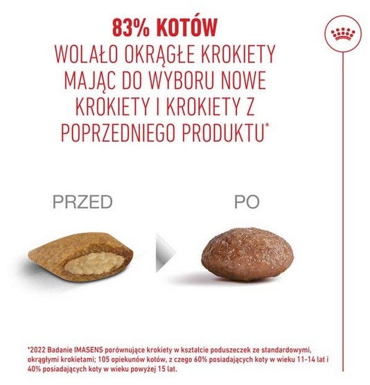 Krokiety w karmie ROYAL CANIN® AGEING 11+ zostały opracowane i przetestowane przez koty starsze tak, aby ułatwić im jedzenie i sprawić, aby każdy posiłek był przyjemnością.