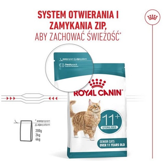 Sucha karma ROYAL CANIN® AGEING 11+ STERILISED opracowana została specjalnie dla kotów wysterylizowanych/ wykastrowanych w wieku powyżej 11 lat.