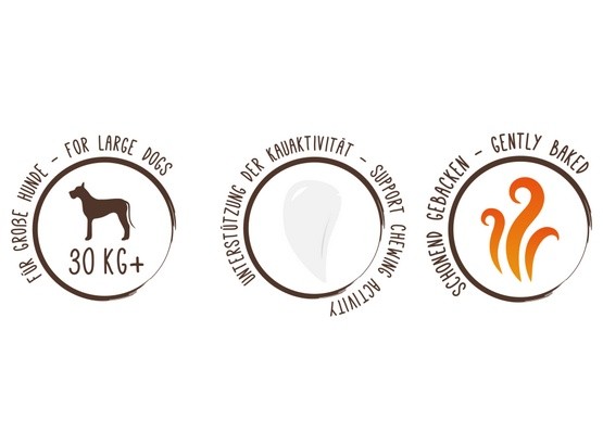 Niepowtarzalne ze złocistobrązową skórką, nasze 5-ziarniste musli jest szczególnie twarde i chrupiące, dzięki czemu Twój pies nadal będzie mógł wzmacniać swój zgryz.