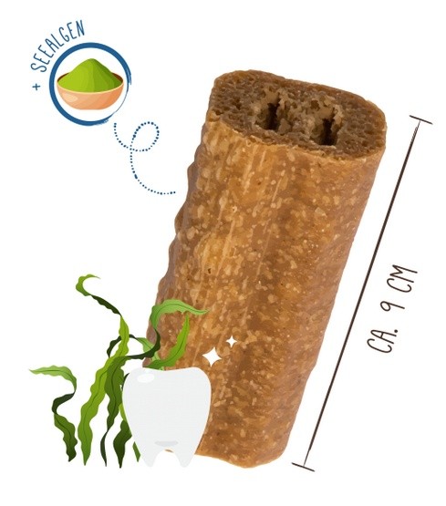 Dzięki specjalnemu kształtowi, rozmiarowi i konsystencji szczoteczka do zębów wspiera Twojego futrzanego przyjaciela w codziennej higienie jamy ustnej: regularne żucie pozwala na łatwe usuwanie resztek jedzenia, a wodorosty zapewniają również czyste i zdrowe zęby i dziąsła. Twój futrzany nos to pokocha.
