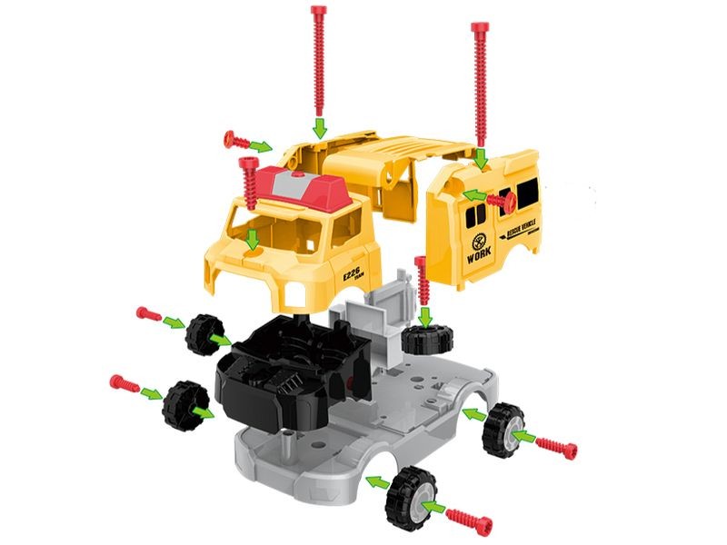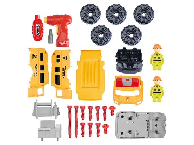 Rozkręcane pogotowie naprawcze to idealna zabawka dla małych majsterkowiczów. Zestaw ten rozwija kreatywność, logiczne myślenie i zdolności manualne. W skład zestawu wchodzi mnóstwo części, m.in. koła, karoseria, śruby.