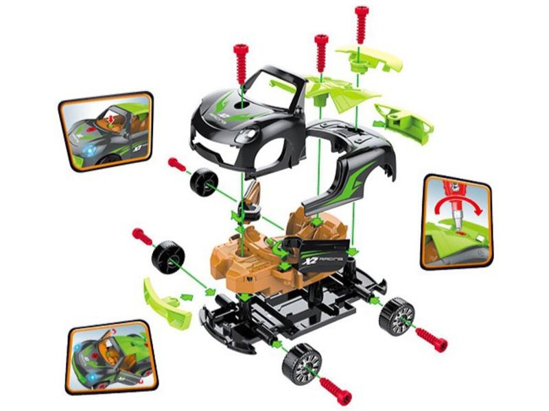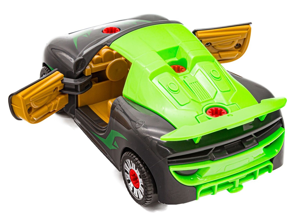 Rozkręcane auto to idealna zabawka dla małych majsterkowiczów. Zestaw ten rozwija kreatywność, logiczne myślenie i zdolności manualne. W skład zestawu wchodzi mnóstwo części, m.in. koła, zderzaki, spojlery, śruby.