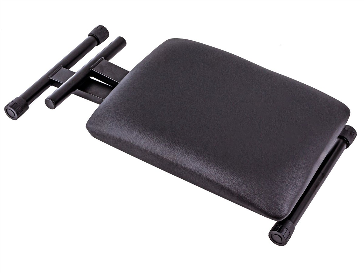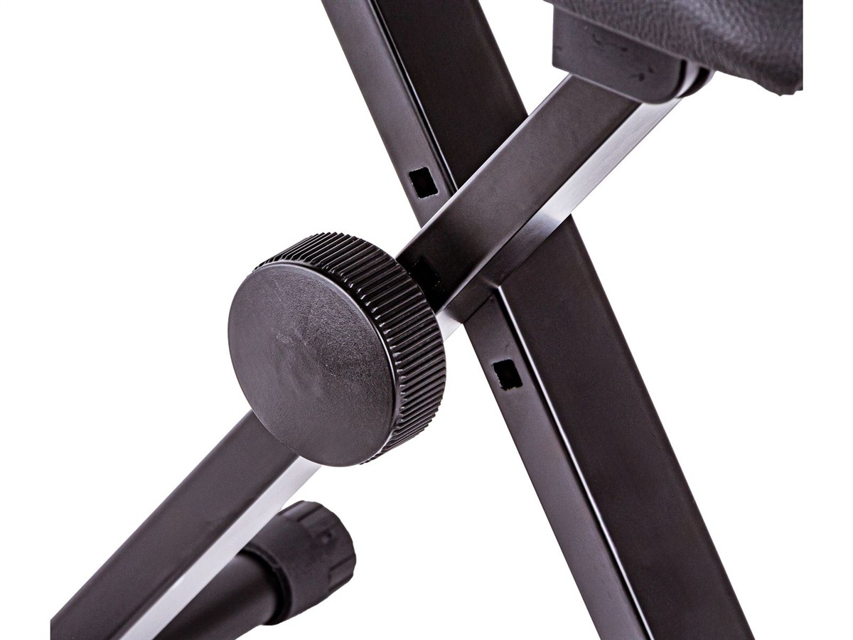 Solidny stołek dzięki porządnej konstrukcji zapewni stabilność podczas gry na keyboardzie w każdych warunkach. Za sprawą regulowanej wysokości jest uniwersalnego zastosowania - zarówno dla mniejszych jak i większych użytkowników. Podstawa posiada przeciwślizgowe końcówki dodatkowo zapewniające stabilizację podczas zabawy. Wygodne siedzisko zapewnia komfort i pozwala w pełni skupić się na tworzonej muzyce.