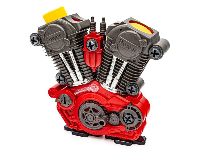 Poszczególne elementy silnika można rozkręcać i skręcać bez końca a realistyczny dźwięk pracy silnika, efekty świetlne oraz ruchome elementy takie jak pracujące tłoki silnika czy obracający się pasek klinowy z pewnością uatrakcyjnią zabawę.