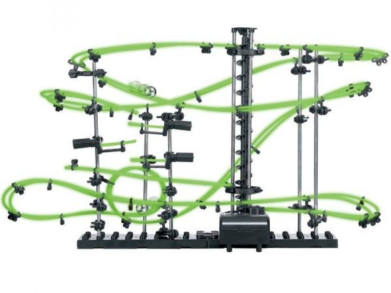 Cała konstrukcja wykonana jest z metalu, plastiku i żyłki. Połączenie wszystkich elementów finalnie daje wielki tor, po którym wędrują metalowe kulki. Zjeżdżają one przez pętle jedna za drugą aż dotrą do windy, która wiezie je na sam szczyt budowli gdzie zabawa zaczyna się od nowa. Spacerail to puzzle 3d, które wzbudzą Twoją kreatywność, ponieważ możesz budować konstrukcje według swojego uznania, nie koniecznie zgodnie z krokami zawartymi w instrukcji.