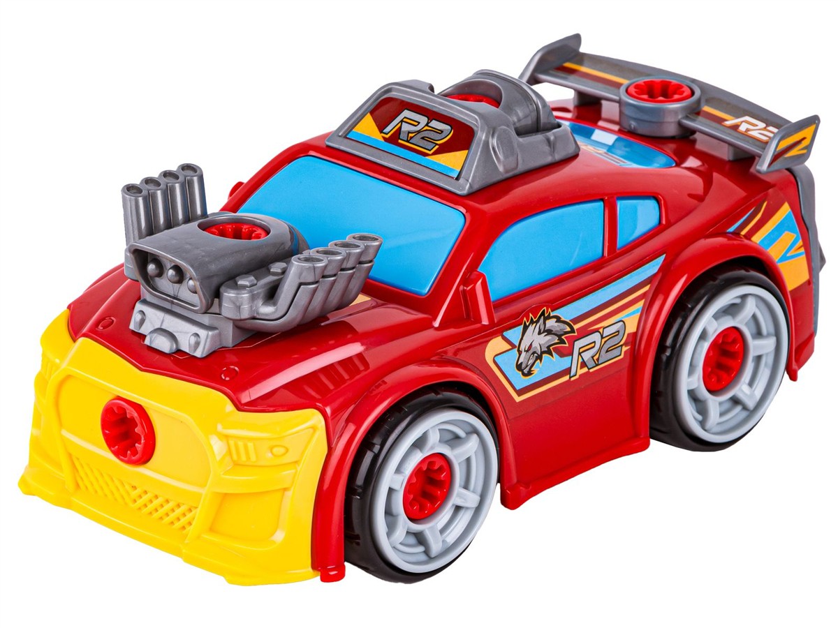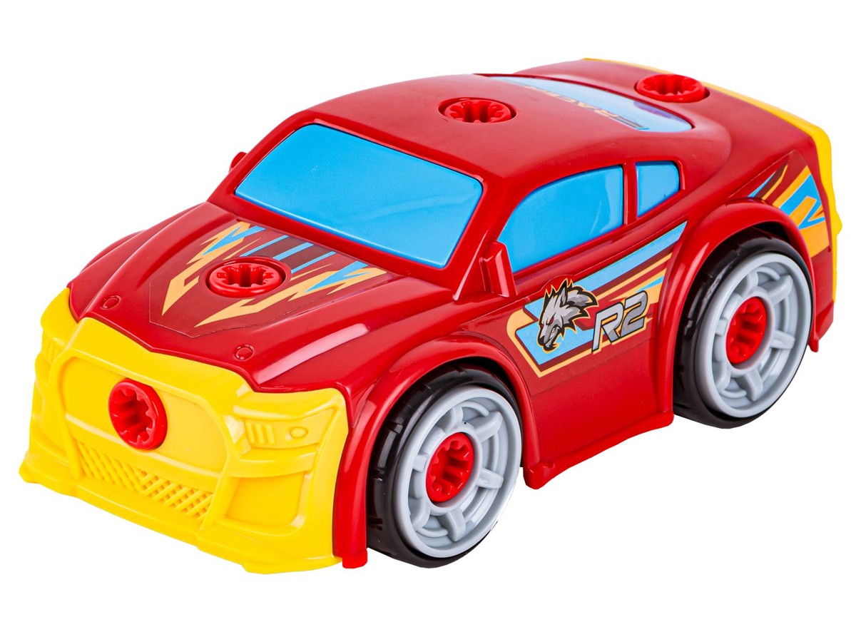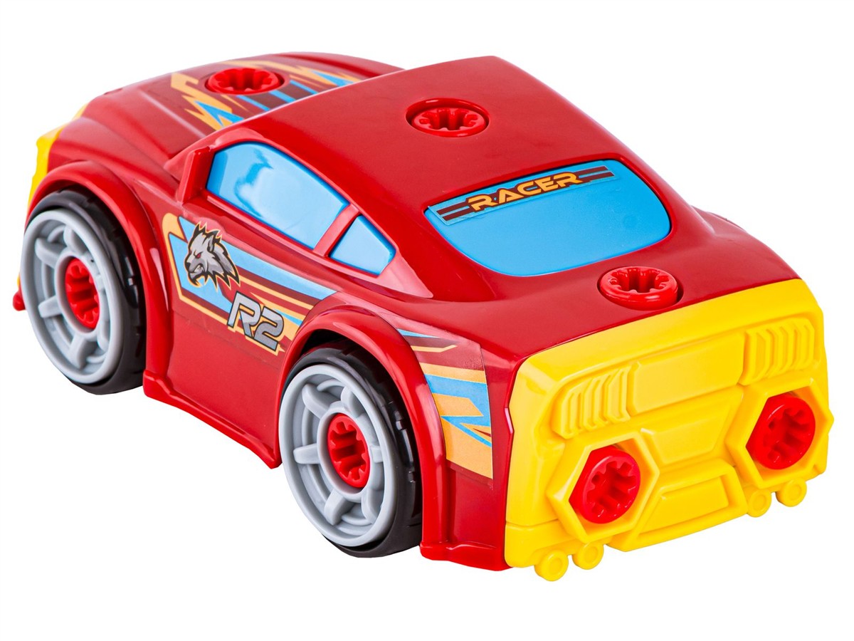 Rozkręcane auto to idealna zabawka dla małych majsterkowiczów. Zestaw ten rozwija kreatywność, logiczne myślenie i zdolności manualne. W skład zestawu wchodzi sporo części, m.in. koła, silnik, spojler, śruby.