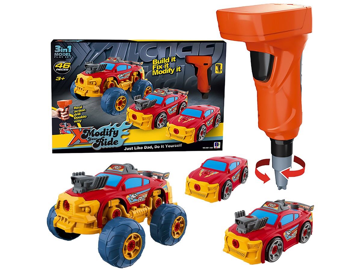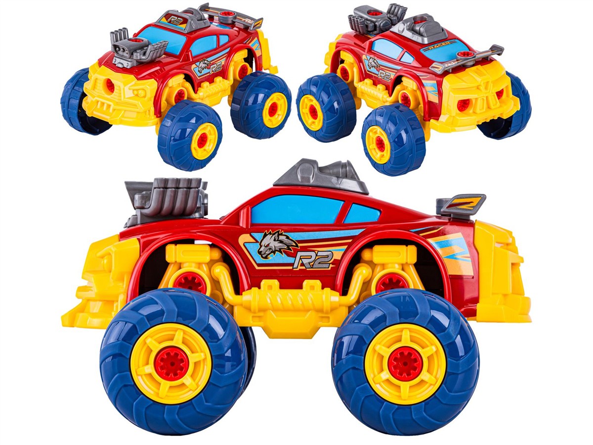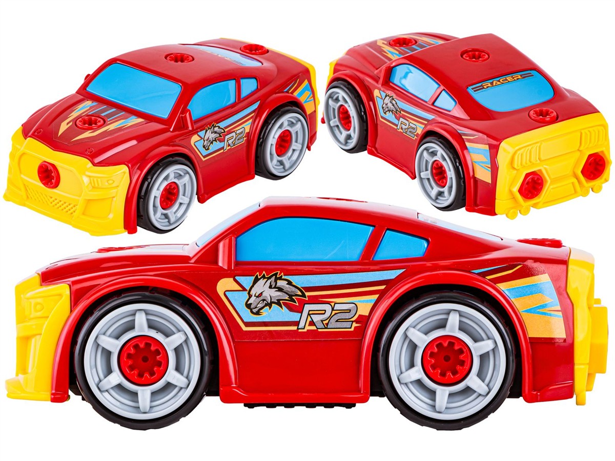 Rozkręcane auto to idealna zabawka dla małych majsterkowiczów. Zestaw ten rozwija kreatywność, logiczne myślenie i zdolności manualne. W skład zestawu wchodzi sporo części, m.in. koła, silnik, spojler, śruby.