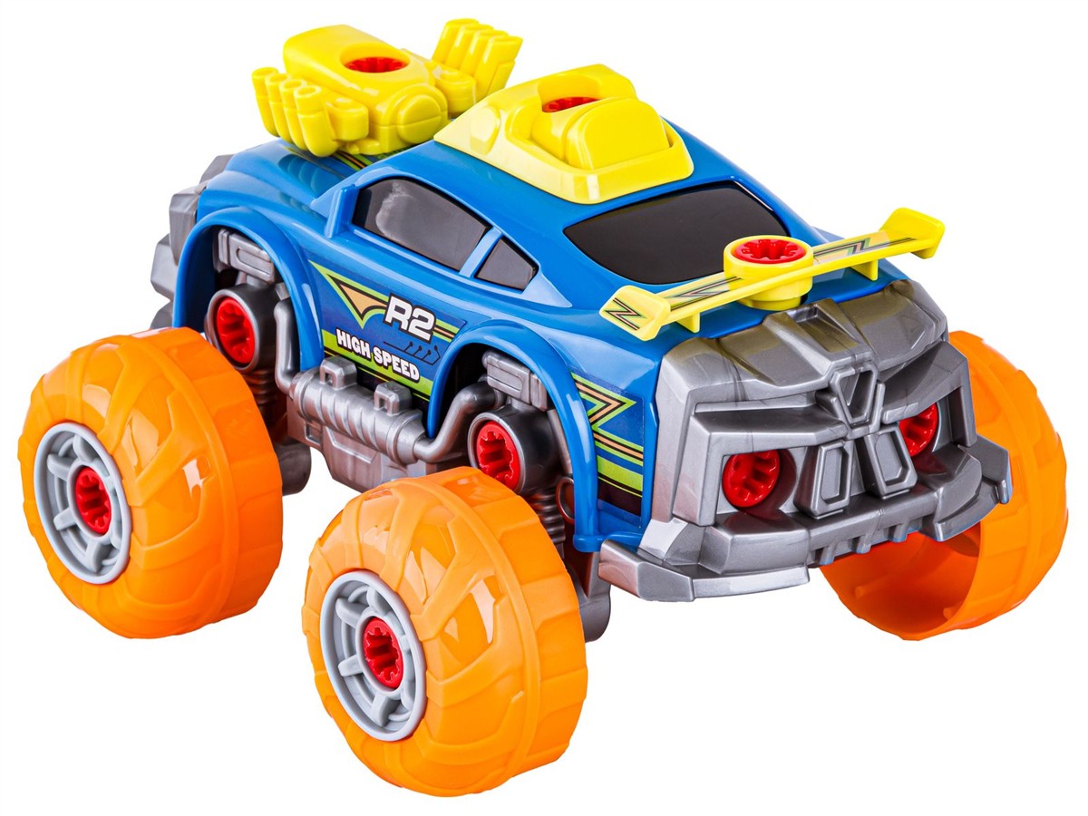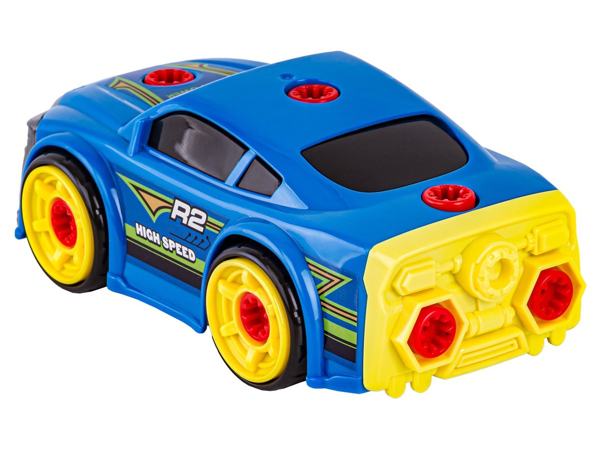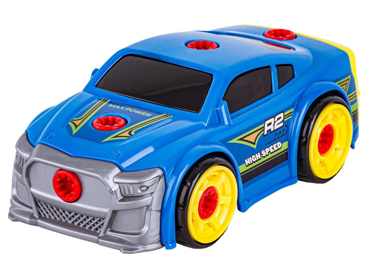 Rozkręcane auto to idealna zabawka dla małych majsterkowiczów. Zestaw ten rozwija kreatywność, logiczne myślenie i zdolności manualne. W skład zestawu wchodzi sporo części, m.in. koła, silnik, spojler, śruby.