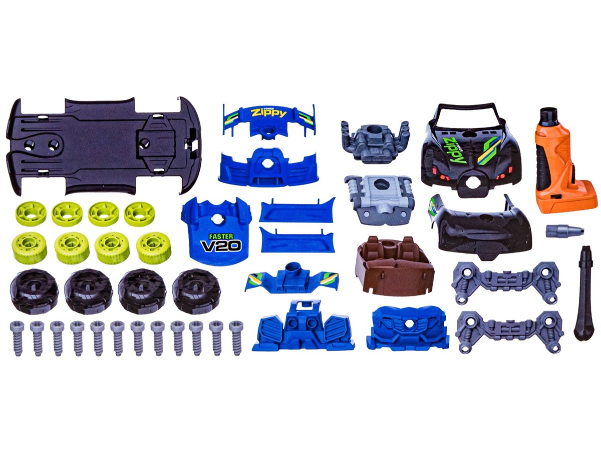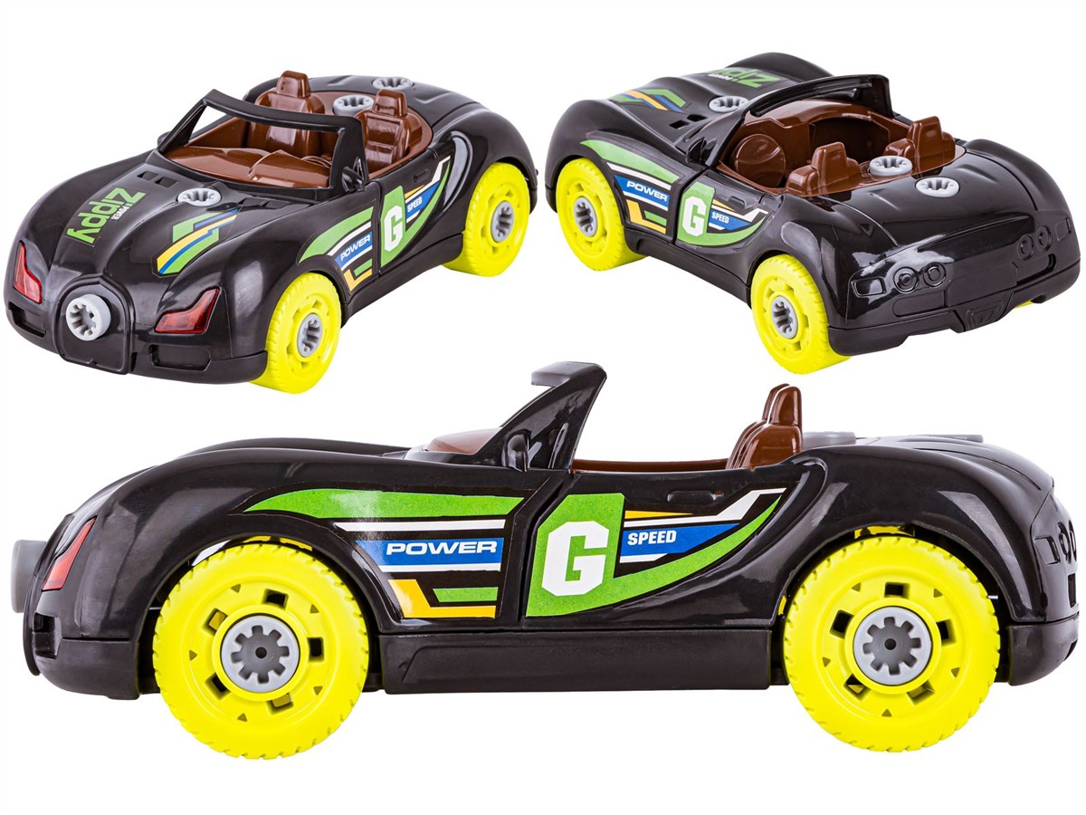Rozkręcane auto to idealna zabawka dla małych majsterkowiczów. Zestaw ten rozwija kreatywność, logiczne myślenie i zdolności manualne. W skład zestawu wchodzi sporo części, m.in. koła, silnik, spojler, śruby.
