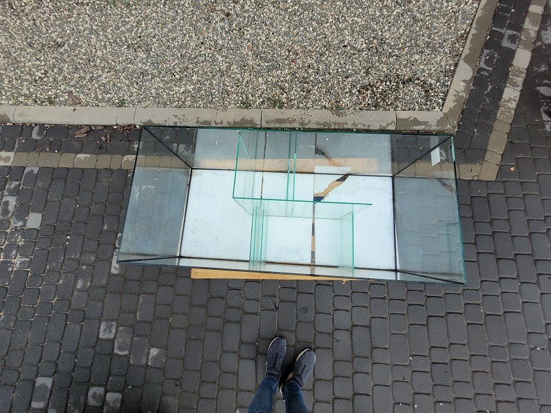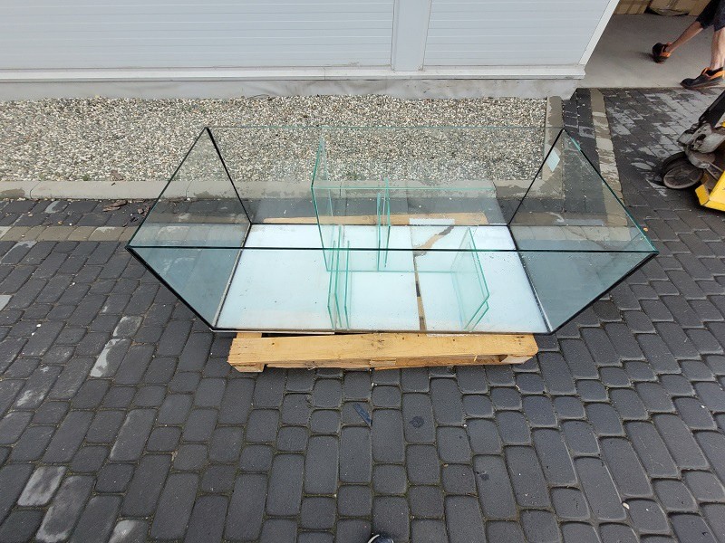 Zadbany zbiornik techniczny szklany typu SUMP o wymiarach 133x60x50cm. Produkt używany przez rok.