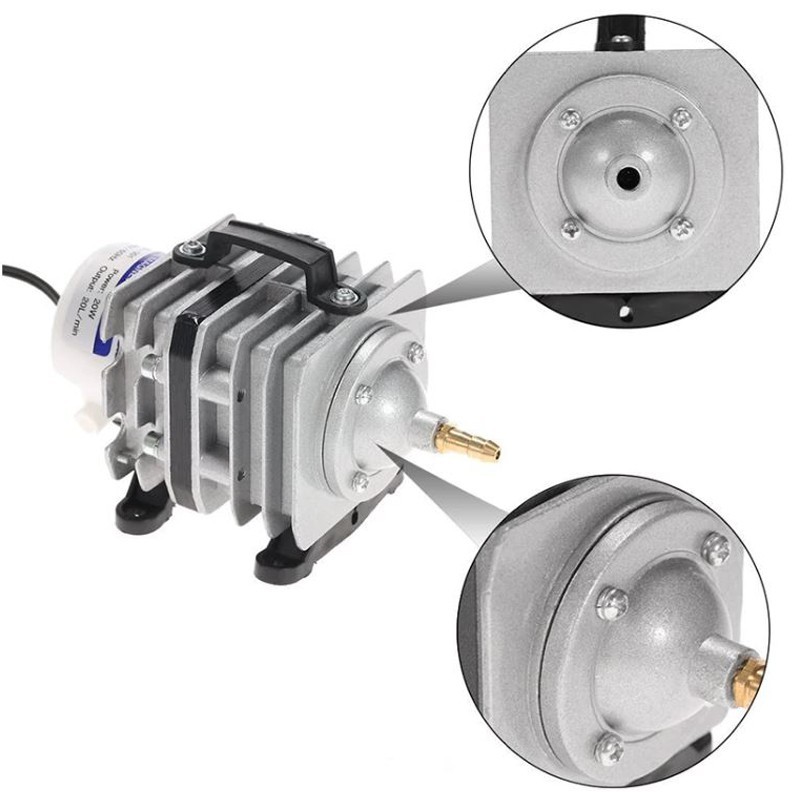 Pompa napowietrzająca przystosowana do użytku w akwariach, stawach i oczkach wodnych. Wyposażona w silnik elektryczny o prostej i niezawodnej konstrukcji tłoczkowej, wykonanej został z materiałów o podwyższonej wytrzymałości na zużycie.