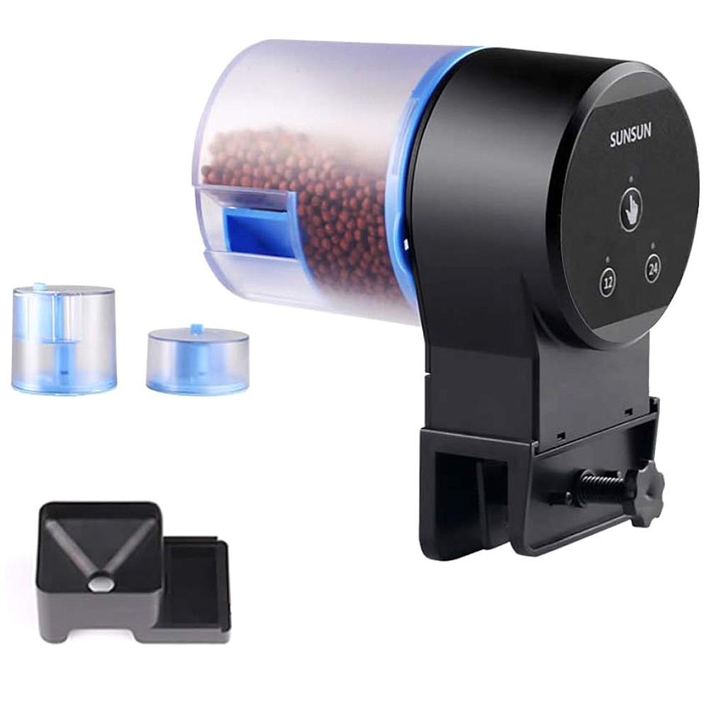 Dozownik automatyczny SunSun może podawać pokarm o postaci granulek do 3mm średnicy i każdy w postaci płatków.