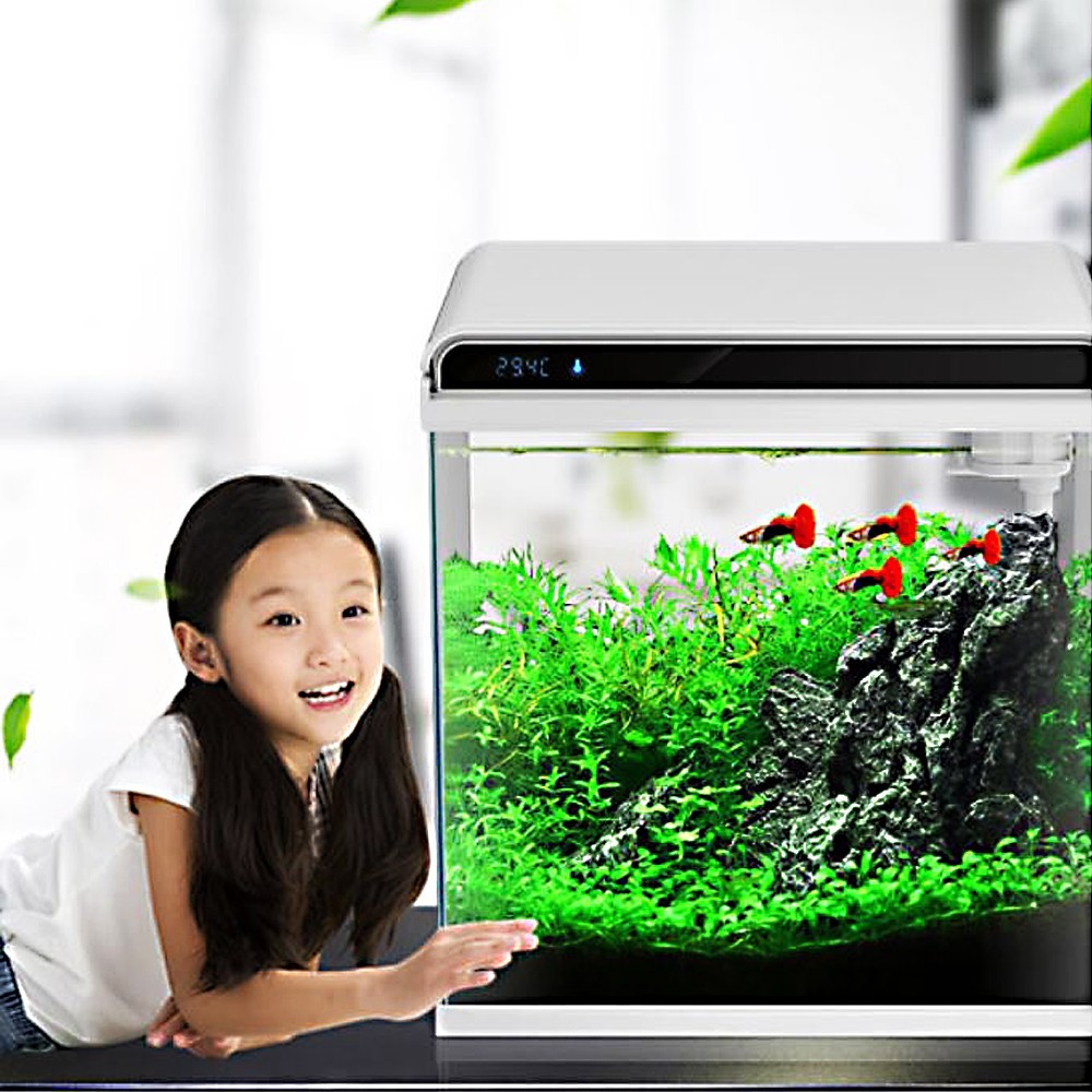 Za oświetlenie zbiornika odpowiada lampa LED o diodach RGB. Znajdująca się w pokrywie lampa doskonale oddaje barwę ryb i wpływa na fotosyntezę roślin oraz zapewnia odpowiednią przejrzystość wody. Oświetlenie posiada przełącznik dotykowy, który umożliwia sterowanie pracą lampy, czyli przełączanie w tryb nocny.