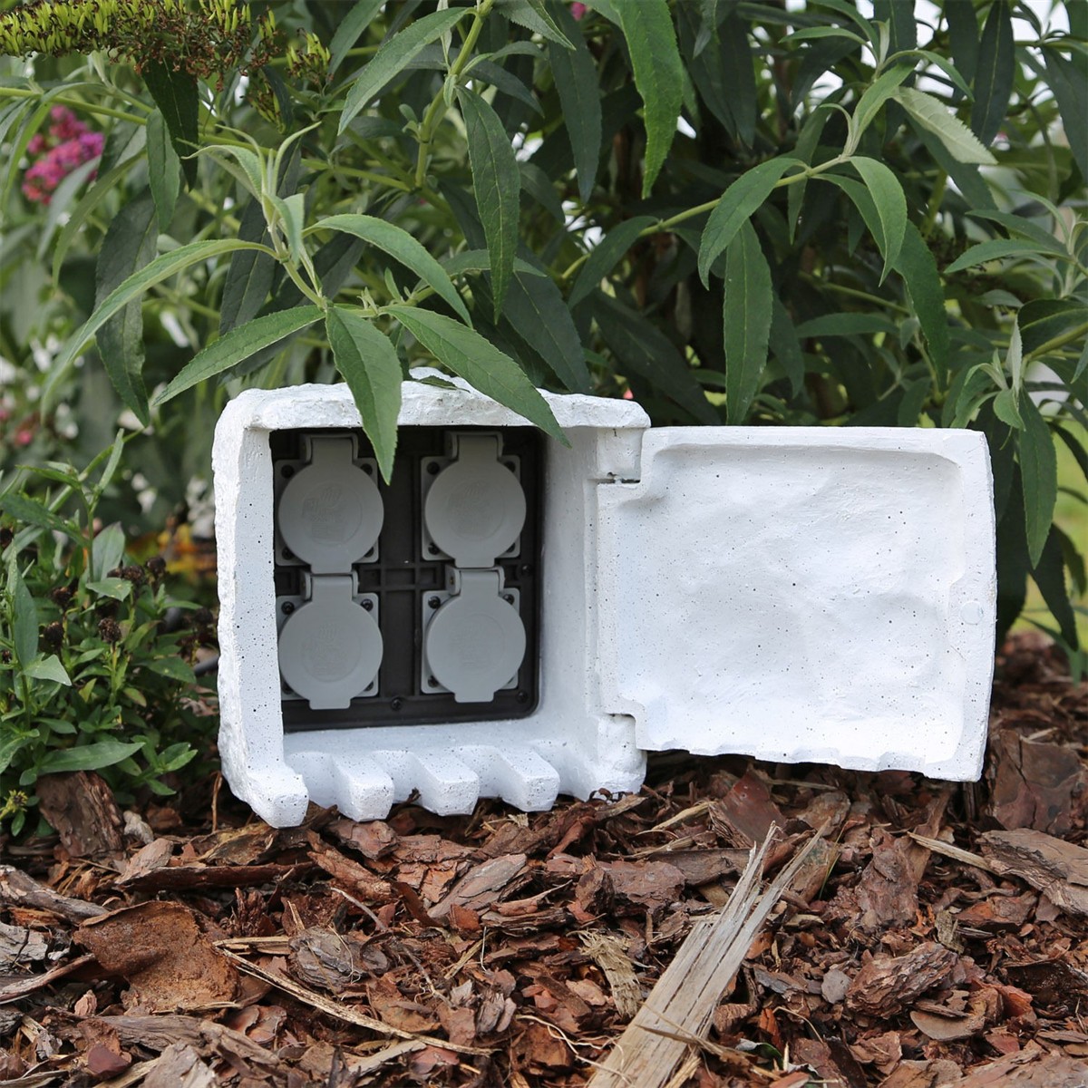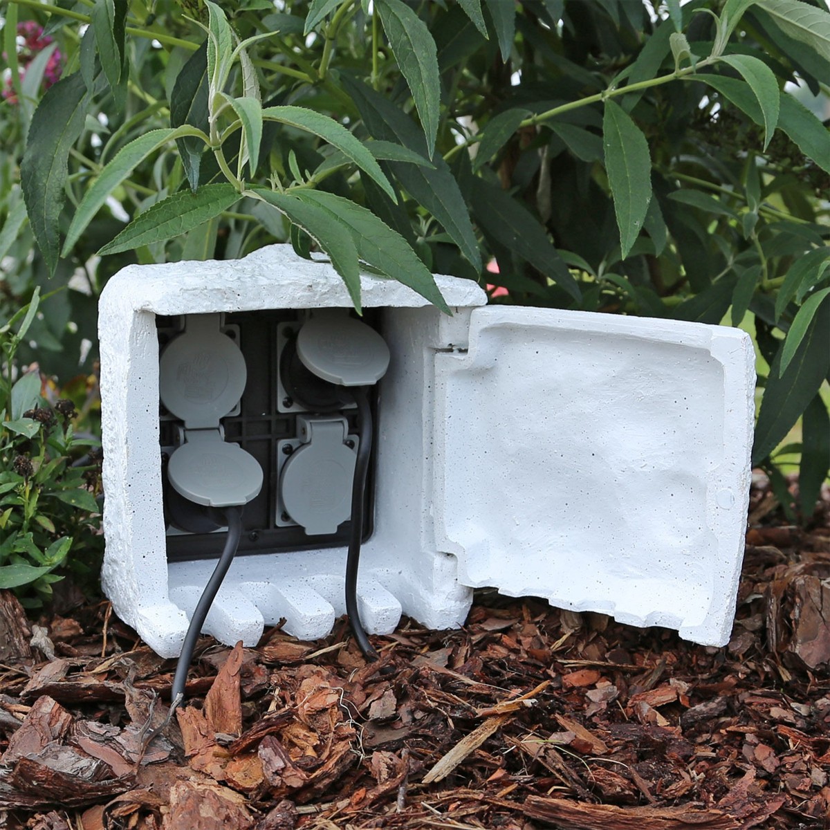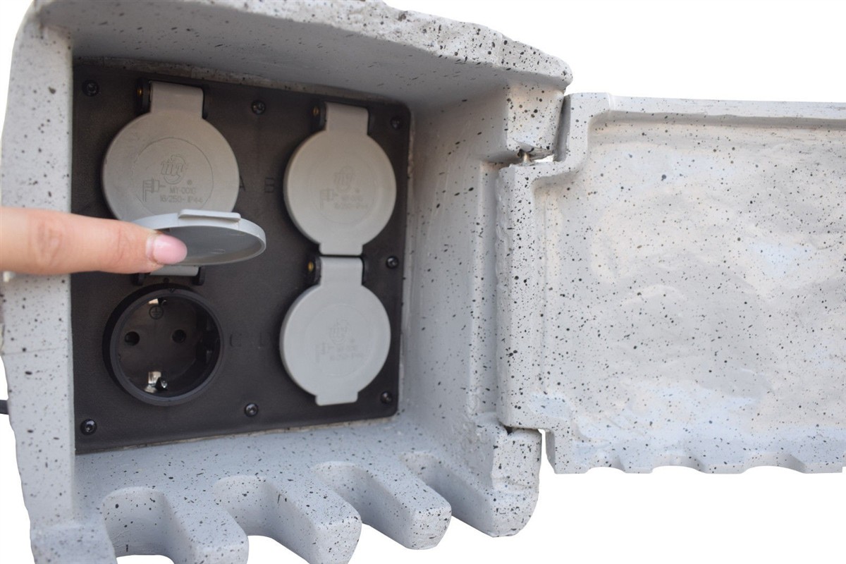 Posiada specjalne wyloty na kable podłączonych urządzeń znajdujące się u podstawy rozdzielacza. Takie rozwiązanie umożliwia całkowite schowanie instalacji elektrycznych, dzięki czemu obiekt staje całkowicie niezauważalny, a nawet stanowi ozdobę naturalnego ogrodu