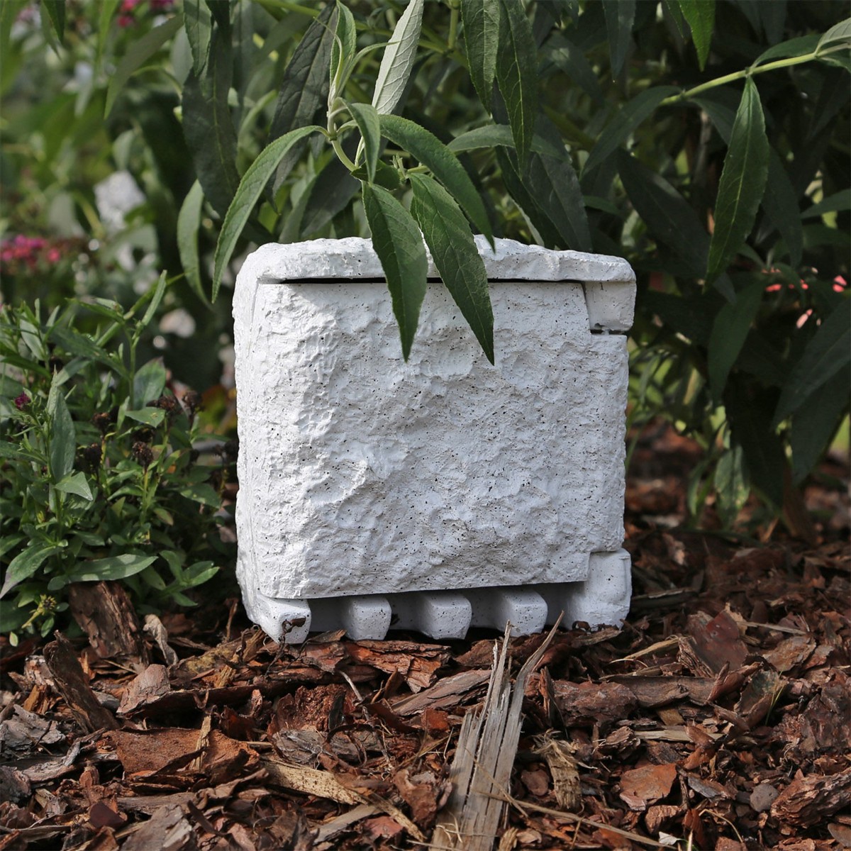 Rozdzielacz marki SunSun wyróżnia się na tle konkurencyjnych swą estetyką, która umożliwia stałe zamontowanie w ogrodzie bez negatywnego skutku na estetykę otoczenia. Kamienny wygląd urządzenia daje się łatwo wkomponować w wystrój każdego ogrodu.