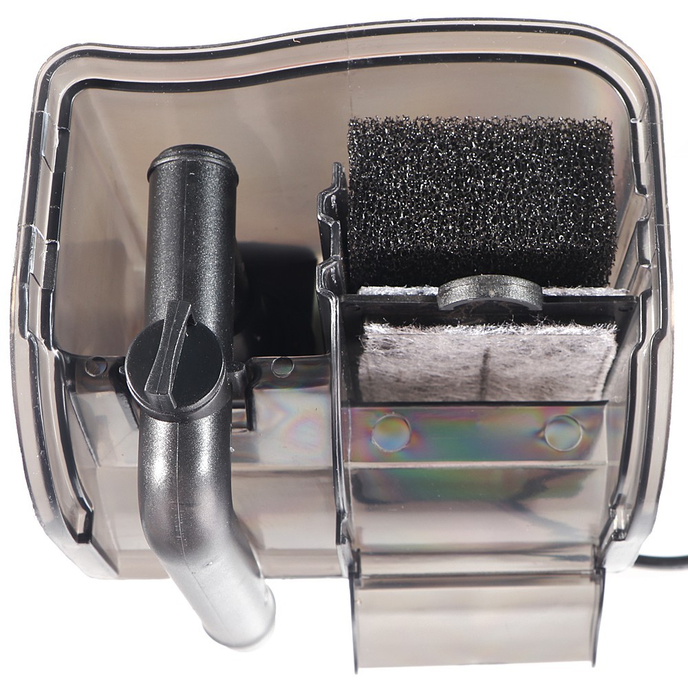 Filtr wyposażony jest w podwójny wlot, dzięki któremu odfiltrujesz wodę z jej toni oraz z powierzchni. Przepływająca woda poprzez włókninę filtracyjną, węgiel aktywowany i gąbkę zainstalowany w filtrze jest automatycznie czyszczona. Powraca do akwarium na zasadzie kaskady co zapewnia świetne napowietrzenie wody, a Ty dzięki temu możesz już wyłączyć głośny napowietrzacz, gdyż nie będzie już więcej potrzebny.