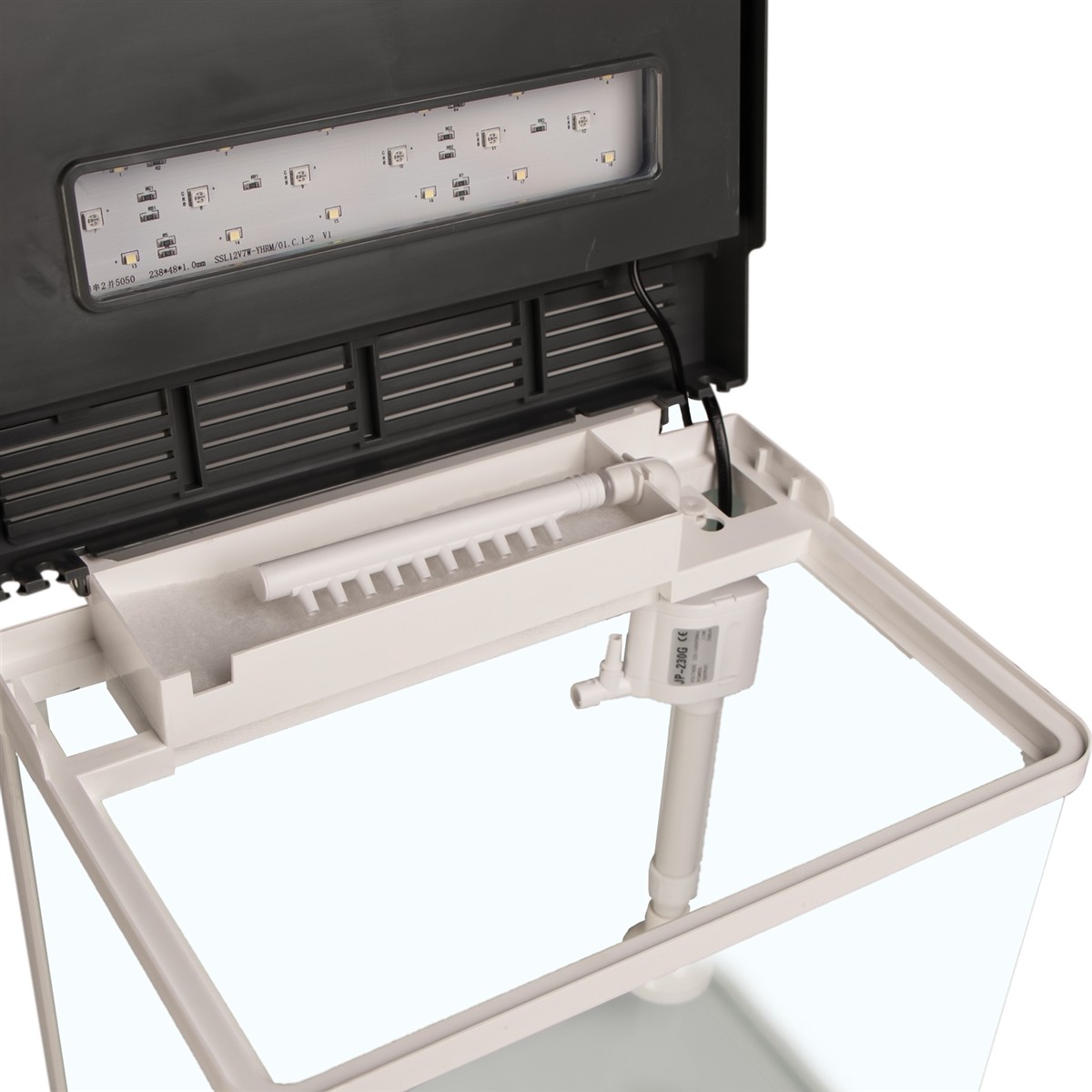 Za oświetlenie odpowiada panel LED'owy o różnych kolorach diod i mocy 4.5W. Wysoka moc umożliwia hodowlę nawet najbardziej wymagających roślin. Dodatkowo, skala barw emitowana przez panel jest sprzyjająca fotosyntezie roślin oraz nadaje żywych intensywnych barw roślinom i rybom oraz wzbudza refleksy świetlne na popularnych rybach neonkach.