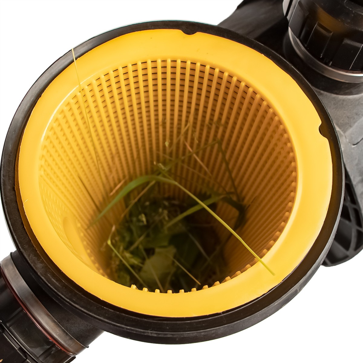 Znajduje się na wlocie wody do pompy. Woda wpadając do niego przepływa przez spory kosz na zanieczyszczenia, aby następnie trafić do komory silnika. Tak odfiltrowana woda umożliwia ciągła pracę pompy bez potrzeby pielęgnacji. Co więcej łatwo i szybko osuniesz z pojemnika wszelkie zanieczyszczenia.