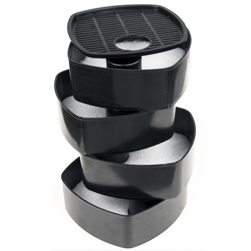 Filtr wyposażony jest w cztery kosze filtracyjne. Znacznie ułatwia to utrzymanie filtra w porządku oraz umożliwia dostosowywanie użycia różnego rodzaju wkładów do potrzeb akwarium.