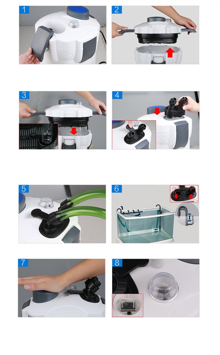 Filtr posiada system "aqua-stop" blokujący dopływ wody z filtra do węży. Zawór ten umożliwia odłączenie węży od pokrywy filtra. Jest niezbędny podczas wszelkich prac pielęgnacyjnych.