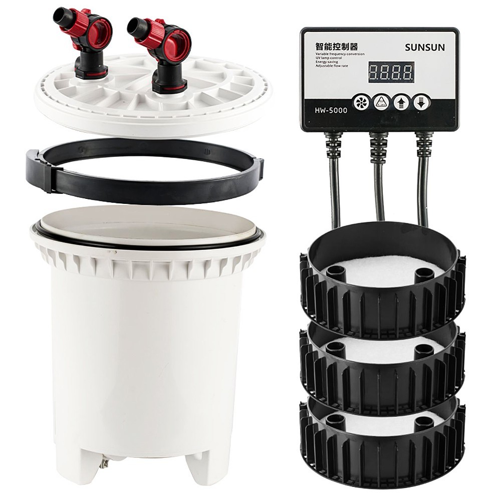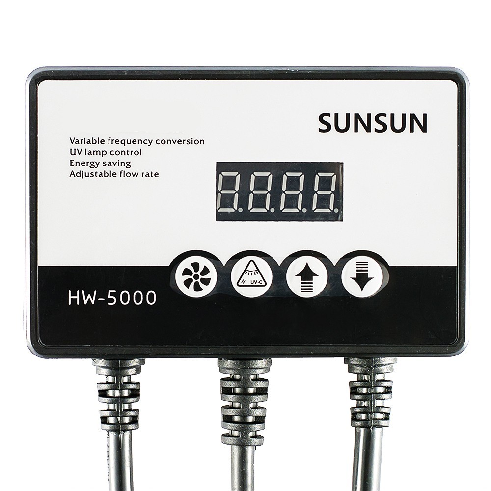 SunSun HW-5000 to z największy filtr dostępny w kraju. Wyposażony jest w lampę UV-C oraz elektroniczne sterowanie wydajnością pompy wody i pracą lampy. Filtr przeznaczony do dużych zbiorników. Siedmiostopniowa regulacja wydajności umożliwia ustalenie wydajności od 1800l/h do 4600l/h. Śmiało można stwierdzić, że jest to obecnie najwydajniejszy filtr na rynku akwarystycznym.