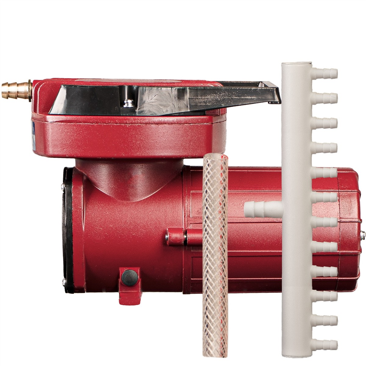 Pompa powietrza generująca duży przepływ przy bardzo wysokim ciśnieniu powietrza. Zasilana napięciem 12V polecana jest do szerokiej gamy zastosowań, począwszy na basenowym jacuzzi czy oczkach wodnych kończąc na przemyśle. Konstrukcja "bezolejowa" gwarantuje czyste wydmuchiwane powietrze. Do pracy ciągłej.