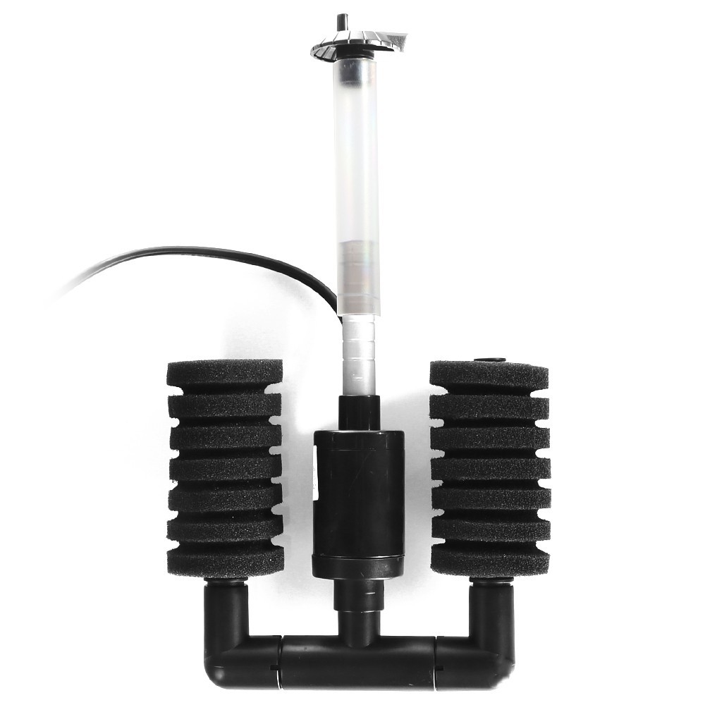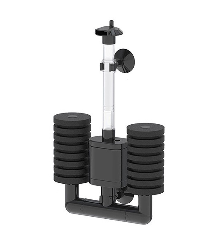 Filtr ma spore możliwości adaptacyjne. Gąbki mogą być ułożone w dowolnym kierunku. Daje Ci to sporo możliwości, gdyż możesz pobierać wodę z dowolnego miejsca z akwarium i co ważne możesz stworzyć odpowiednią cyrkulację wody w akwarium. Ale to nie wszystko!