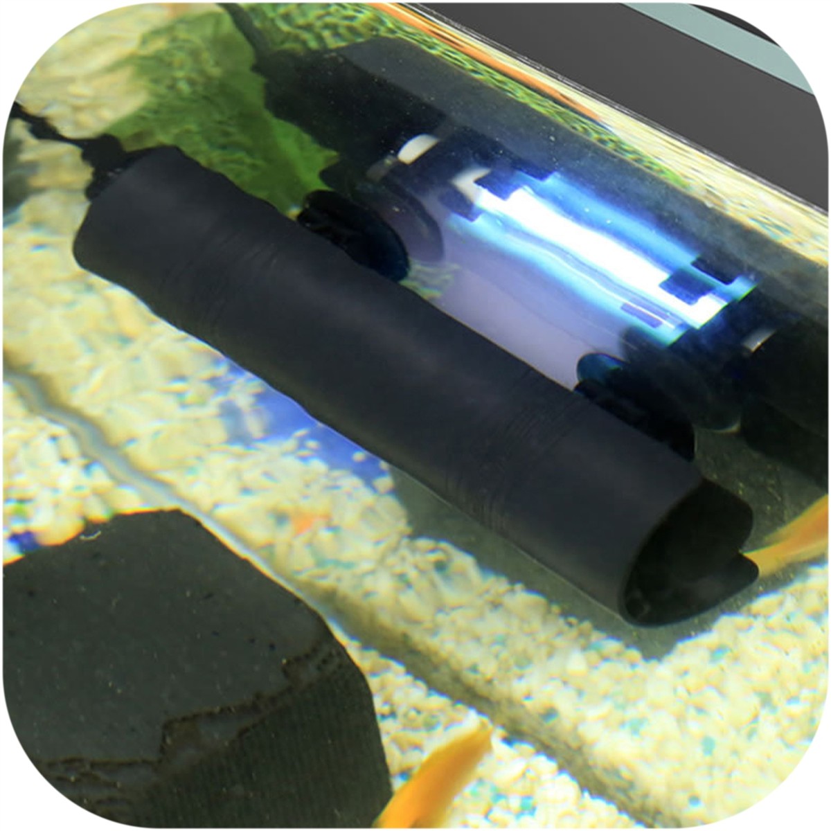 Lampa UV - UVC, czyli sterylizator akwarystyczny. Zabija wszelkie glony w akwarium, klaruje i czyści zieloną wodę oraz zabezpiecza przed patogenami, grzybami, pleśnią i wirusami. Lampa wewnętrzna stosowana wewnątrz akwarium. Posiada przyssawki, odbłyśnik oraz włącznik umieszczony na długim kablu z wtyczką UE/PL.