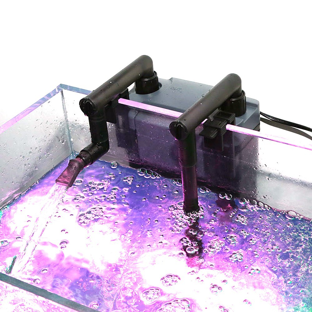 Filtr umieszczany jest na krawędzi zbiornika za pomocą specjalnych wieszaków. Uchwyty te posiadają regulację umożliwiającą dopasowanie ich do grubości szkła w zakresie od 4mm do 20mm. Specjalna stopka utrzymuje filtr w pionie. Wykonanie jej z elastycznej i miękkiej gumy doskonale tłumi drgania powstałe z pracy wirnika i przepływu wody czyniąc filtr niesłyszalnym.