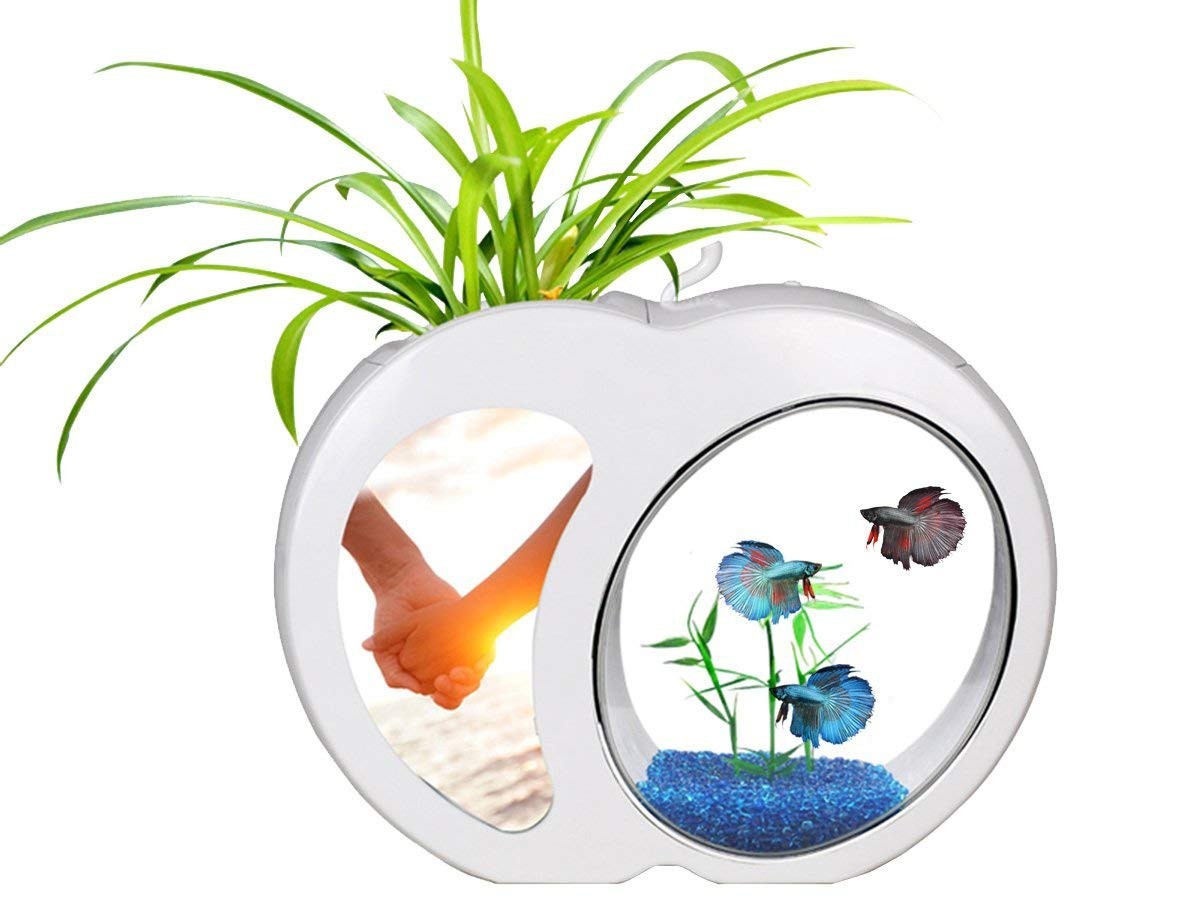 Całość wykonana jest z estetycznego tworzywa sztucznego z największą dbałością o szczegóły. Ramka na zdjęcia posiada zdejmowaną osłonkę, zatem można na zbiorniku umieścić dowolną grafikę czy zdjęcie. Przeźroczyste ścianki akwarium wykonane są z akrylu, podnosząc bezpieczeństwo użytkowania.