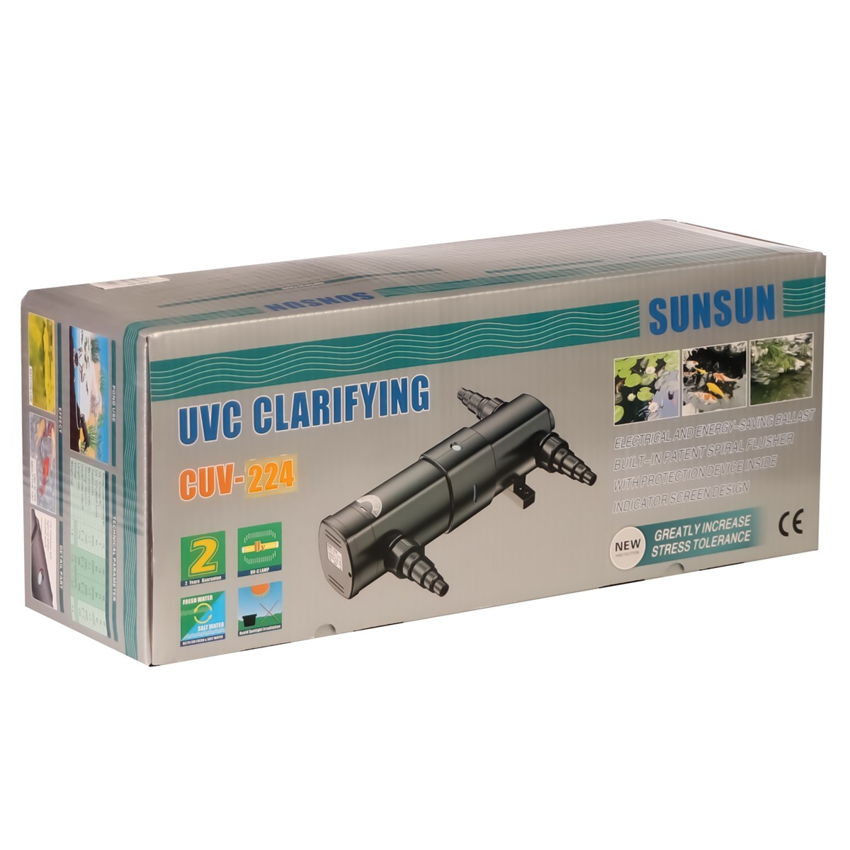 Nowy dwu-wylotowy model sterylizatora UV "Clarifying". Cechuje się nowymi rozwiązaniami technicznymi oraz sporą i wydajną mocą żarnika 24W. Przystosowany jest do pracy ciągłej 24/7. Może byc używany "pod chmurką", czyli poza jakimkolwiek zadaszeniem. W zestawie znajduje się zestaw złączek o różnej średnicy.