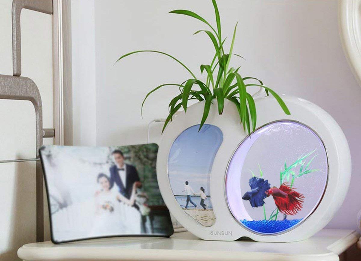 Całość wykonana jest z estetycznego tworzywa sztucznego z największą dbałością o szczegóły. Ramka na zdjęcia posiada zdejmowaną osłonkę, zatem można na zbiorniku umieścić dowolną grafikę czy zdjęcie. Przeźroczyste ścianki akwarium wykonane są z akrylu, podnosząc bezpieczeństwo użytkowania.