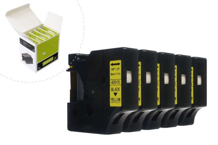 Taśma JetWorld Zamiennik Dymo D1 Czarny na Żółtym 9mm x 7m (5szt.) LM100 , LM120, LM150, LM160, LM200, LM210, LM210D, LM220, LM260, LM260P, LM260D, LM