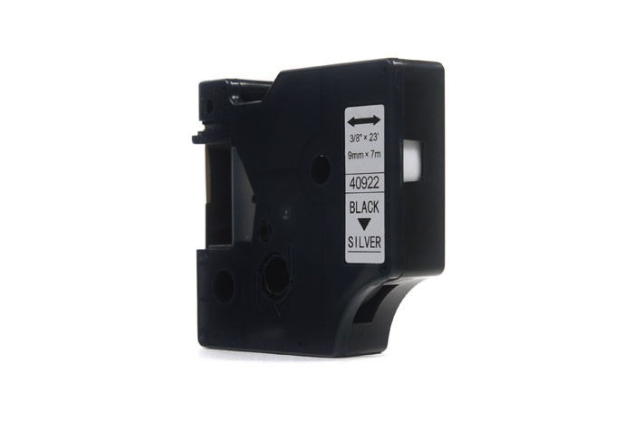 Taśma JetWorld Zamiennik Dymo D1 Czarny na Srebrnym 9mm x 7m  LM100, LM100Plus, LM100Series, LM120P, LM280, LM300, LM350, LM350D, LM350Series, LM360D,