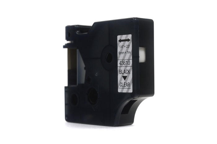 Taśma JetWorld Zamiennik Dymo D1 Czarny na Przezroczystym 6mm x 7m  LM100, LM100+, LM200, LM300, LM400, LM420P, LM350, LM350D, LM360D, LM450D, LM260P,
