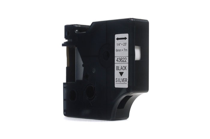 Taśma JetWorld Zamiennik Dymo D1 Czarny na Srebrnym 6mm x 7m LM100, LM100+, LM200, LM300, LM400, LM420P, LM350, LM350D, LM360D, LM450D, LM260P, LM120P