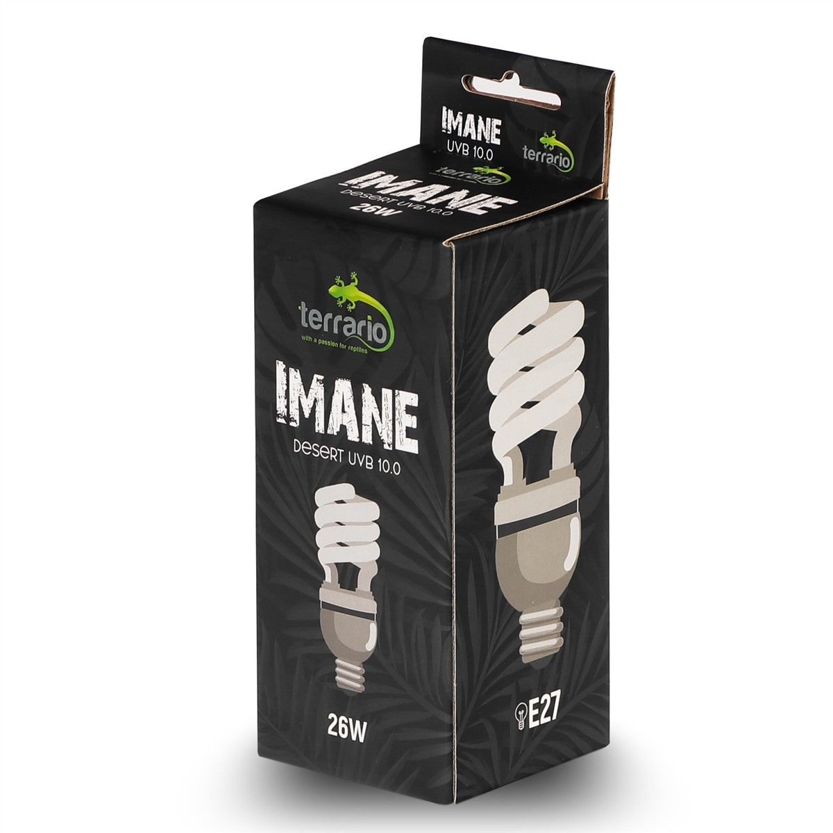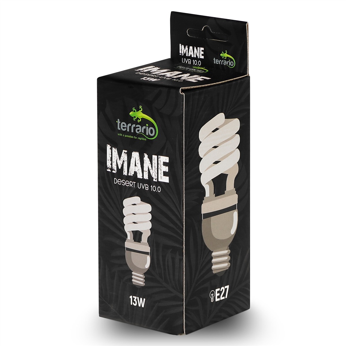 Terrario Imane Desert UVB 10.0 to kompaktowa terrarystyczna żarówka emitująca promienie UVA i dużą ilość promieni UVB (10%). Przeznaczona do terrarium pustynnego dla wszystkich gatunków gadów z terenów pustynnych. Sprzyja najważniejszym funkcjom, takim jak apetyt, trawienie, reprodukcja i wchłanianie wapnia (promienie UV-B stymulują syntezę witaminy D3).