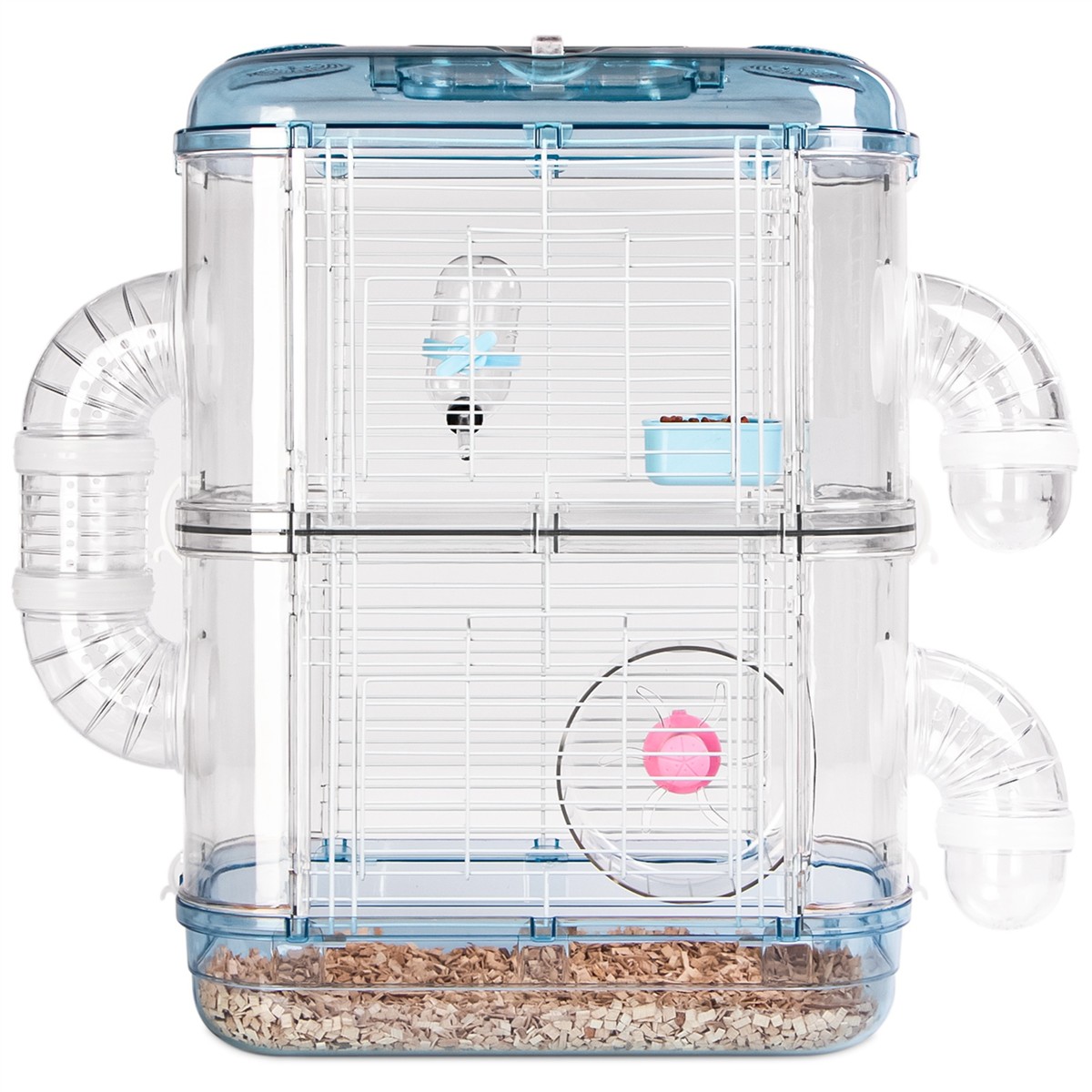 Dwupoziomowa klatka dla chomika lub myszy. To nie tylko pełen zestaw różnych niezbędnych elementów dla małych gryzoni, ale przemyślana konstrukcja dająca wiele frajdy, zarówno dla małych opiekunów futrzastego przyjaciela, jak i dla samego mieszkańca ów klatki. Klatka łączy w sobie plastikowy, przeźroczysty korpus z tradycyjną klatką żebrową.