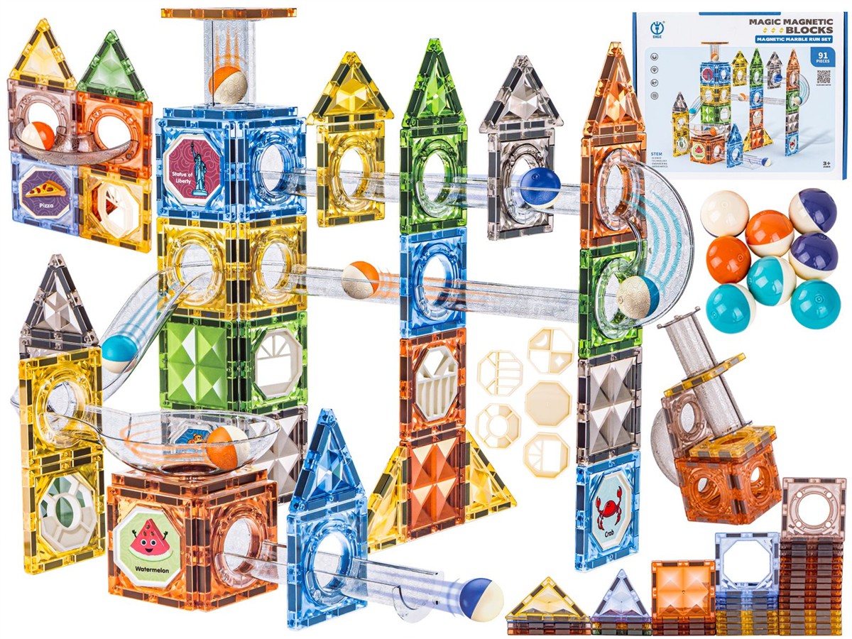 Klocki Magnetyczne, Tor Kulkowy Dla Kulek 96 Elementów Kulodrom