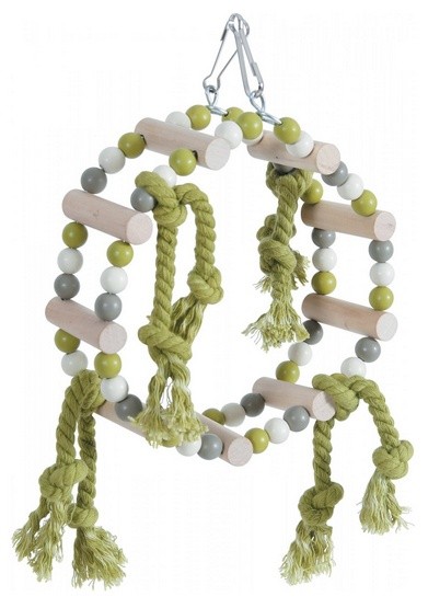 Drabinka na sznurku z drewnianymi szczeblamiDrabinka na sznurku to idealny dodatek do klatki dla ptaków. Posiada 4 drewniane szczebelki, kolorowe koraliki oraz elementy ze skóry. Drabinkę wyposażono w praktyczny karabińczyk, dzięki czemu…