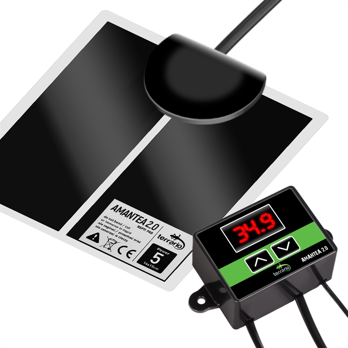 Mata grzewcza do terrarium z termostatem. Precyzyjne sterowanie mocą grzania i sonda temperatury umieszczona na kablu powoduje że ta mata grzejna terrarystyczna jest doskonałym wyborem do ogrzewania każdego terrarium.