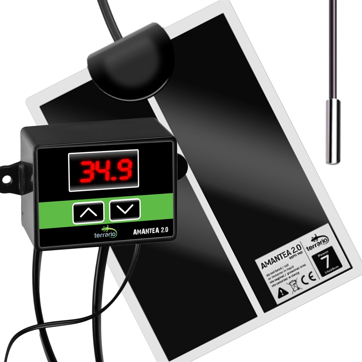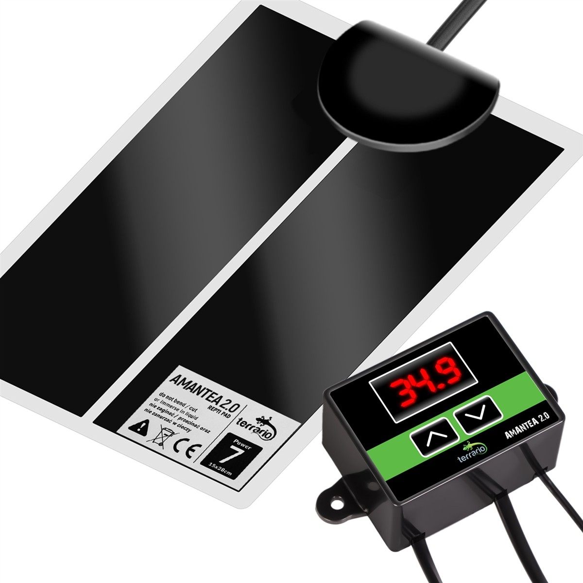 Mata grzewcza do terrarium z termostatem. Precyzyjne sterowanie mocą grzania i sonda temperatury umieszczona na kablu powoduje że ta mata grzejna terrarystyczna jest doskonałym wyborem do ogrzewania każdego terrarium.