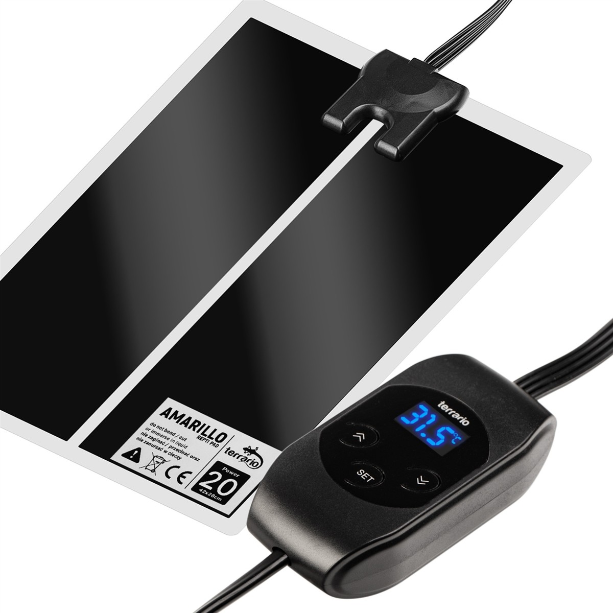 - Cyfrowy Wyświetlacz Temperatury: Wyposażona w łatwy w odczycie cyfrowy wyświetlacz, mata Terrario Amarillo pozwala na bieżąco monitorować temperaturę maty grzewczej, gwarantując idealne warunki w terrarium.